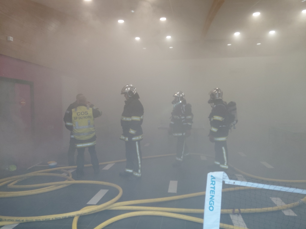 Pas de panique, rien n’a brûlé, ce n’était qu’un exercice incendie ce mardi matin dans les locaux du service jeunesse en collaboration avec les pompiers de Cambrai, d’après un scénario élaboré par le commandement du SDIS, en accord avec la mairie et notre policier municipal, pour tester l’organisation du service et les conditions d’évacuation en cas d’incendie. Et les enfants qui fréquentent le centre aéré n’en croyaient pas leurs yeux devant un tel déploiement de forces car les soldats du feu étaient venus avec la grande échelle, un camion citerne, les véhicules de commandement, et une vingtaine de ces pompiers avaient envahi les lieux derrière le cordon de sécurité installé sur le parking attenant au bâtiment. Ce sont d’ailleurs les adolescents qui ont donné l’alerte en voyant leur salle envahie par la fumée, déclenchée volontairement à l’aide d’une machine à fumigène, car il s’agissait de simuler un départ de feu pour recréer les conditions d’évacuation en gérant une visibilité réduite et en appliquant les procédures d’urgence. Pour les pompiers eux-mêmes, c’était aussi un exercice de formation pour tester les réflexes et comportements, contrôler le bon déclenchement des alarmes incendie, et s’assurer de l’évacuation des enfants vers un autre lieu d’hébergement, en l’occurrence la salle des sports voisine. Quant à l’équipe d’encadrement du service jeunesse, elle a montré « une excellente réactivité dans la gestion de l’évènement » alors qu’elle n’avait pas été prévenue de cette intervention, nous dit Laurent DUPRET, en gérant la situation « avec sang-froid, professionnalisme et bienveillance, tout en rassurant les enfants ».