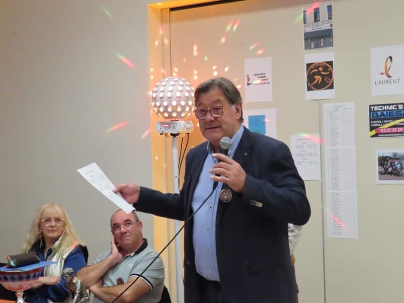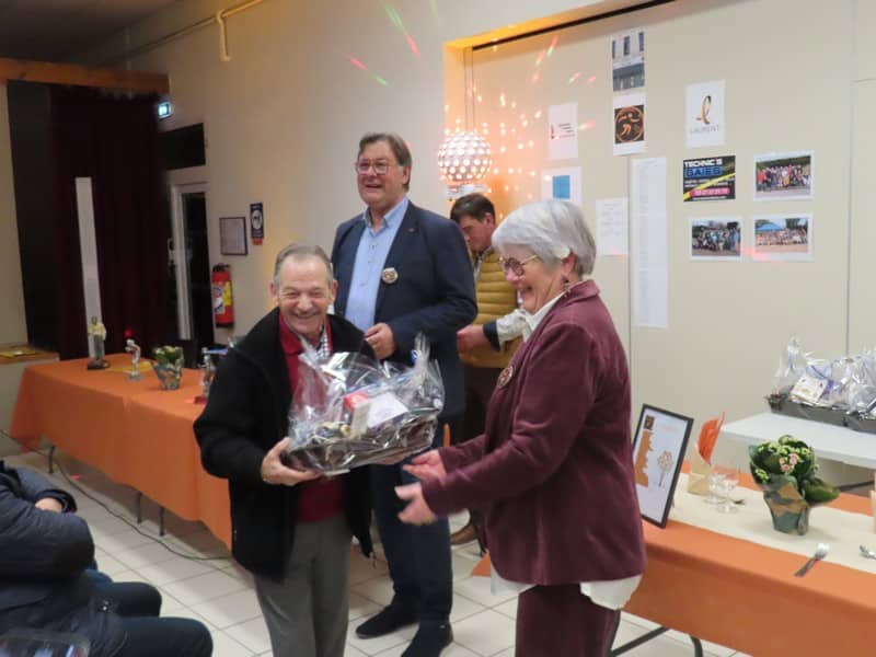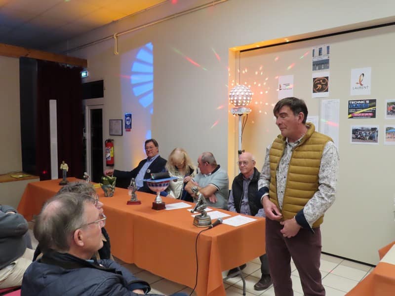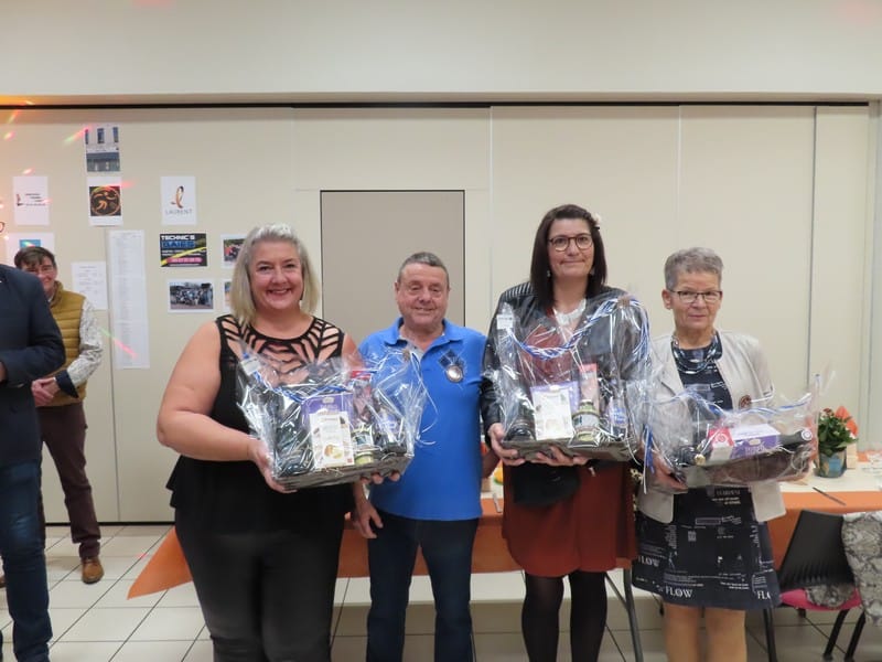 Au terme d’une saison bien remplie, marquée notamment cette année par un tournoi tout public en partenariat avec le Lions Club Cambrai Paix des Dames au profit de la Fondation Frédéric Gaillane, les membres de la Pétanque Ste Olloise ne cachaient leur plaisir de se retrouver ce samedi 15 novembre à la salle de la Marlière pour leur 37ème Assemblée Générale annuelle et le repas festif de fin d’année. En ouvrant la séance le président Guy CORNET ne manquait pas de remercier le maire et les élus présents du fidèle soutien de la commune à leur association, que ce soit en termes de subvention ou d’entretien du boulodrome, avec en particulier cette année le nouvel éclairage. Tout en évoquant le riche bilan de la saison, avec 12 journées de championnats, 4 concours pour les plus de 50 ans, deux nocturnes accompagnées d’un repas et un concours mixte, il saluait l’assiduité et la sportivité de tous les joueurs (94), dont le plus jeune Tom n’a que 16 ans et l’aîné Jean-Philippe 85 ans. Et le trésorier lui-même, Philippe PENALVA confirmait la bonne santé du club, en présentant un budget à l’équilibre, avec un fonds de roulement suffisant à leurs projets, et en remerciant également la commune et les sponsors pour leur aide financière. Puis vint le moment tant attendu de récompenser les meilleurs compétiteurs que Jean-Pierre DRUON appelait tour à tour pour les féliciter et leur offrir un panier richement garni, avant de partager tous ensemble le verre de l’amitié et de venir s’attabler pour une soirée tout aussi festive.