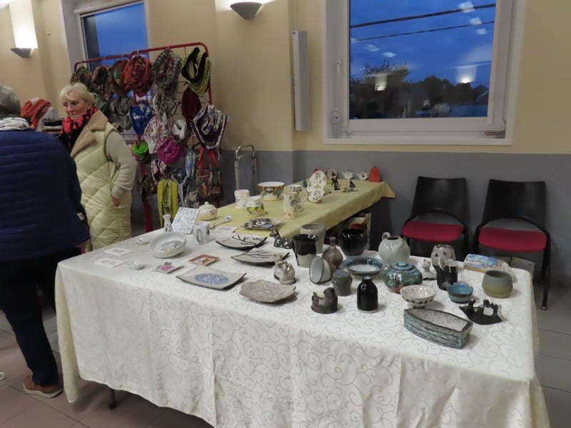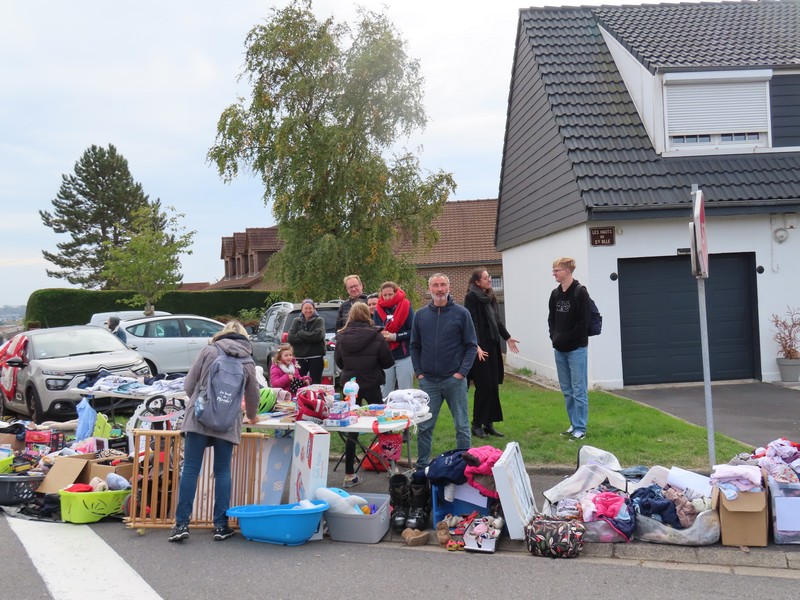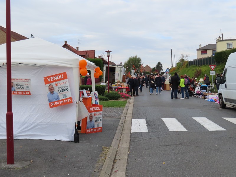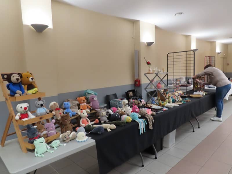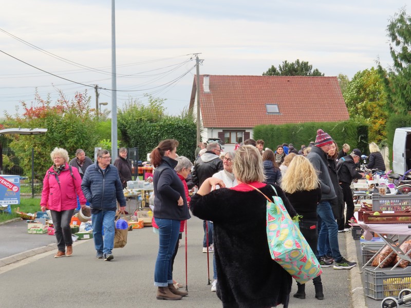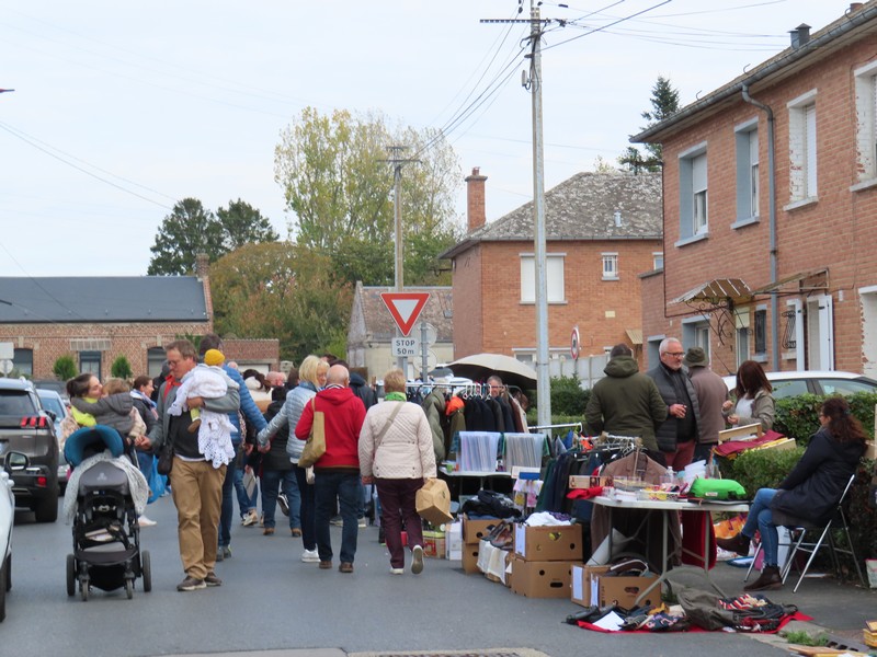 Pour la deuxième année consécutive, la salle des fêtes du Tordoir accueillait les créations originales d’une vingtaine d’artisans d’art aux côtés des œuvres d’ « Art é toile » et de « Diamond painting », tandis qu’à l’extérieur 180 exposants s’étaient répartis 240 emplacements dans les rues fermées à la circulation pour cette 45ème brocante du Club de Loisirs. Comme l’an dernier, les promeneurs étaient venus en grand nombre pour dénicher quelque trouvaille, ou trouver une idée de cadeau auprès des artisans d’art, entre bijoux, bougies, décos, tricots, crochet ou scrapbooking, tandis que les enfants pouvaient profiter de promenades en poneys ou s’exercer au trampoline, bien encadrés par les bénévoles qui assuraient leur sécurité. Et dans les salles, les cuisinières s’activaient derrière le bar pour servir les viennoiseries du matin ou la petite restauration du midi, quand le président courait les rues pour servir les exposants. Mais comme souvent en cette saison, la pluie a eu raison de leur belle énergie en faisant décamper les derniers courageux en début d’après-midi. Reste l’image d’une brocante qui confirme sa nouvelle identité et parvient à se maintenir malgré les aléas, grâce à tous les bénévoles du Club de Loisirs que Louis SINOT n’a pas manqué de remercier, ainsi que les employés communaux pour l’aide qu’ils leur apportent.