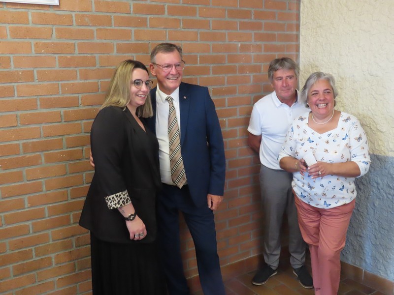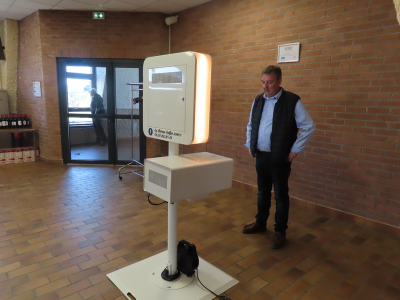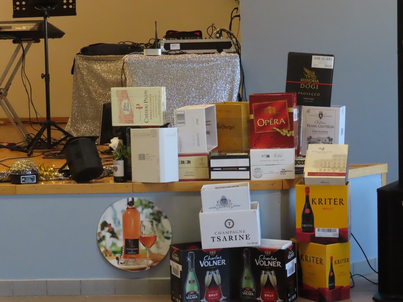 Le maire adressait ensuite ses remerciements à l’équipe technique, ainsi qu’à son adjointe Brigitte BROGNET et aux membres de la Commission des fêtes qui avaient préparé la salle et les couverts, mais aussi à Laura pour les inscriptions et l’impression des menus, ou à Marie pour la conception des étiquettes personnalisées, avec une mention particulière à Florie pour la décoration originale des tables et des bouteilles magnifiquement ornées de grappes de raisin, sans parler des faux amuse-bouches qui trônaient sur le bar parmi les ceps de vigne.