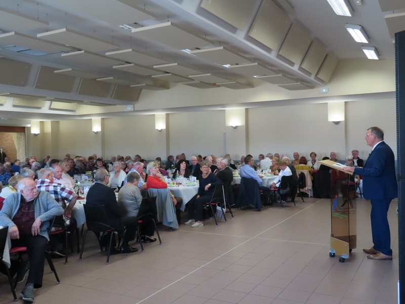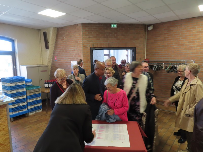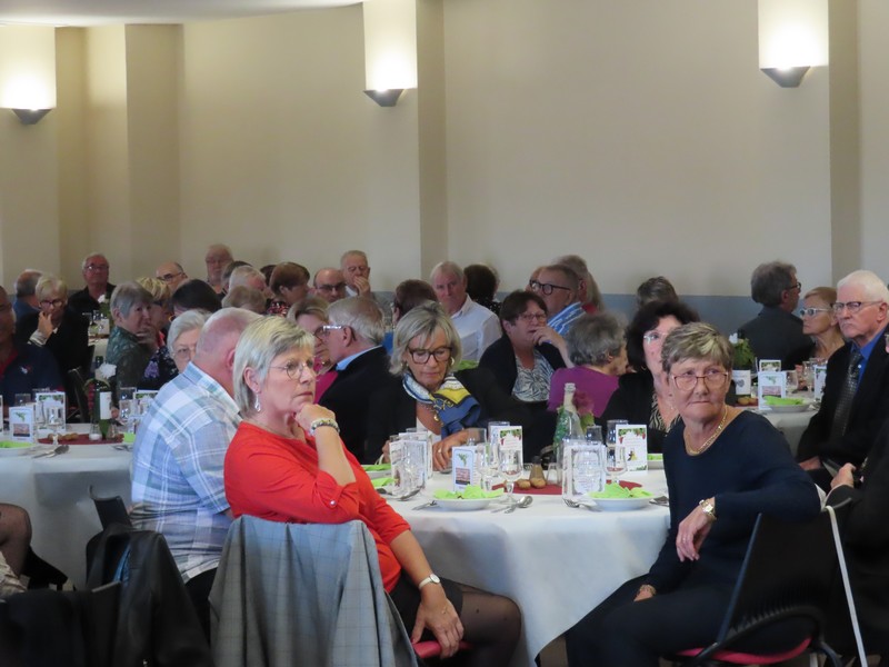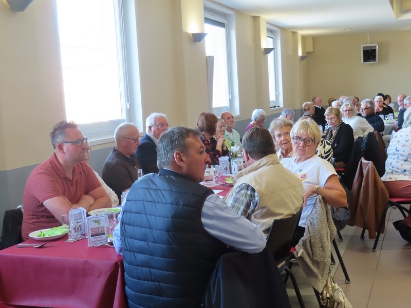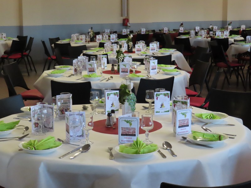Cette année encore le repas des aînés aura été un grand « moment de convivialité partagée » en accueillant près de 220 convives autour de ces nouvelles tables rondes qui équipent désormais la salle des fêtes du Tordoir, et qui facilitent ainsi les échanges entre amis et voisins. Et le thème des vendanges choisi par la commission des fêtes pour la décoration des tables avait déjà de quoi réjouir les yeux autant que leurs palais en attendant de déguster les plats préparés par le restaurant des Oliviers.