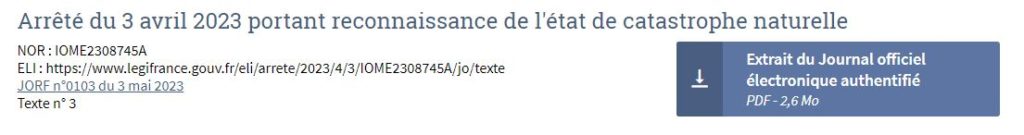 Arrêté du 03 avril 2023 portant reconnaissance de l’état de catastrophe naturelle :