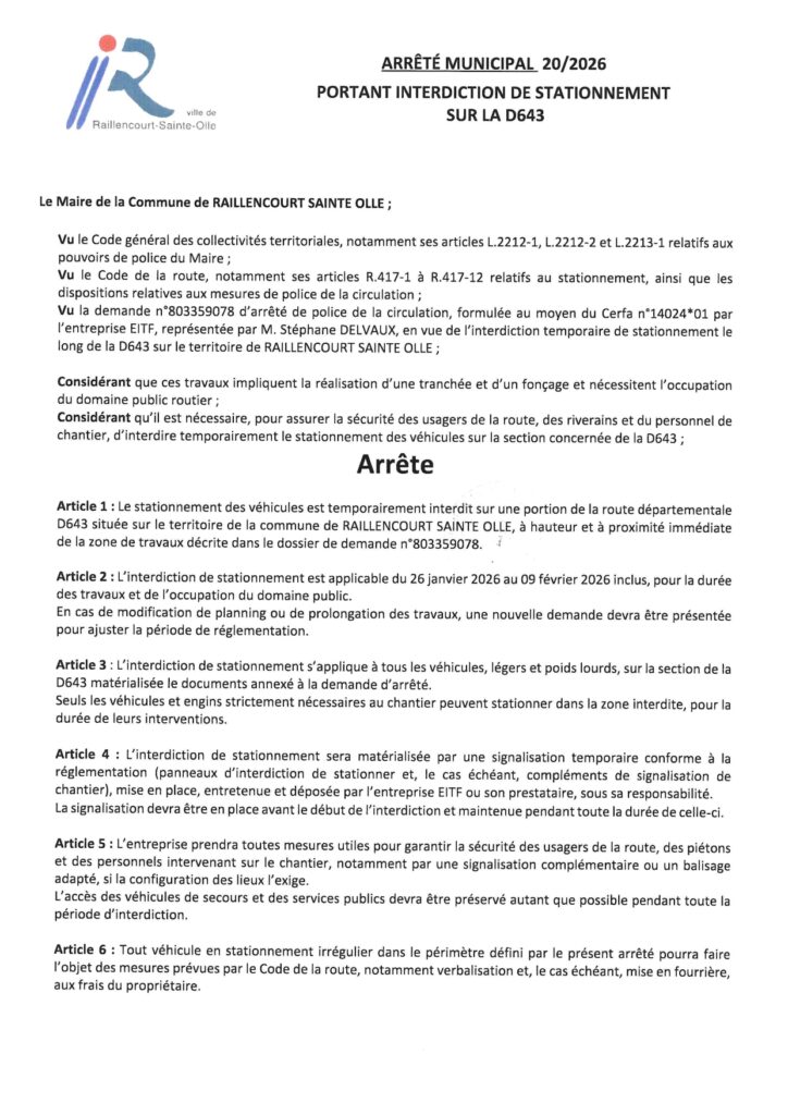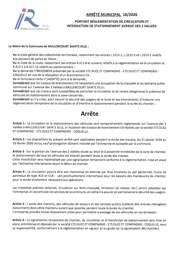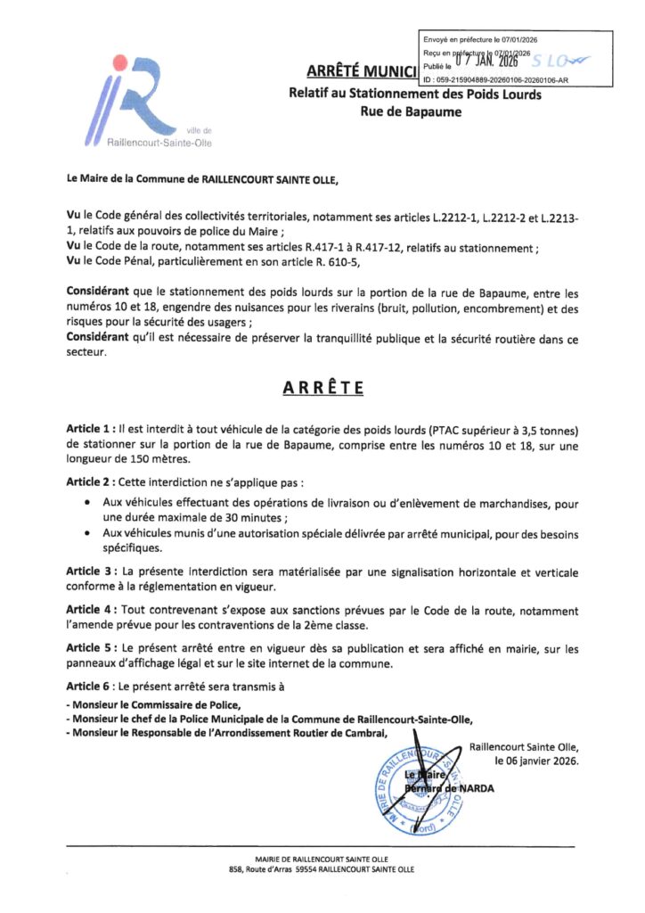 La commune de RAILLENCOURT SAINTE OLLE est reconnue en état de catastrophe naturelle au titre des mouvements de terrain différentiels consécutifs à la sécheresse et à la réhydratation des sols (cf JO du 3 mai 2023) pour la période du 01/04/2022 au 30/09/2022.