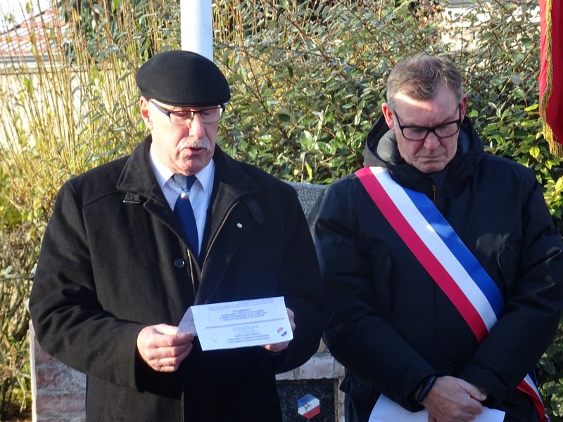 Voilà seulement vingt ans que le mémorial du quai Branly a été érigé en mémoire de tous ceux qui sont « morts pour la France » mais également « de toutes les victimes de la guerre d’Algérie et des combats au Maroc et en Tunisie ». En se réunissant pour cet hommage national devant notre propre stèle, nos Anciens Combattants d’AFN veulent nous rappeler qu’ils sont tributaires de ce devoir de mémoire et qu’ils se doivent de le faire partager aux jeunes générations. C’est le sens de cette cérémonie, telle que l’affirme du moins le message de l’UFAC énoncé par leur président Michel DEZ, et plus largement encore celui du Secrétaire d’État lu par notre maire Bernard de NARDA, pour qu’on n’oublie pas, « ni le sacrifice de ceux qui ne sont pas revenus », comme le brigadier André Vasseur et lieutenant François-Xavier Black, « ni la peine de ceux qui restent ».