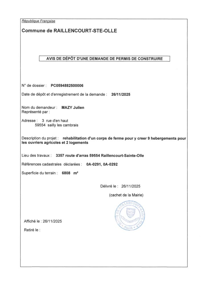 Demande de permis de construire pour une maison individuelle et/ou ses annexes comprenant ou non des démolitions